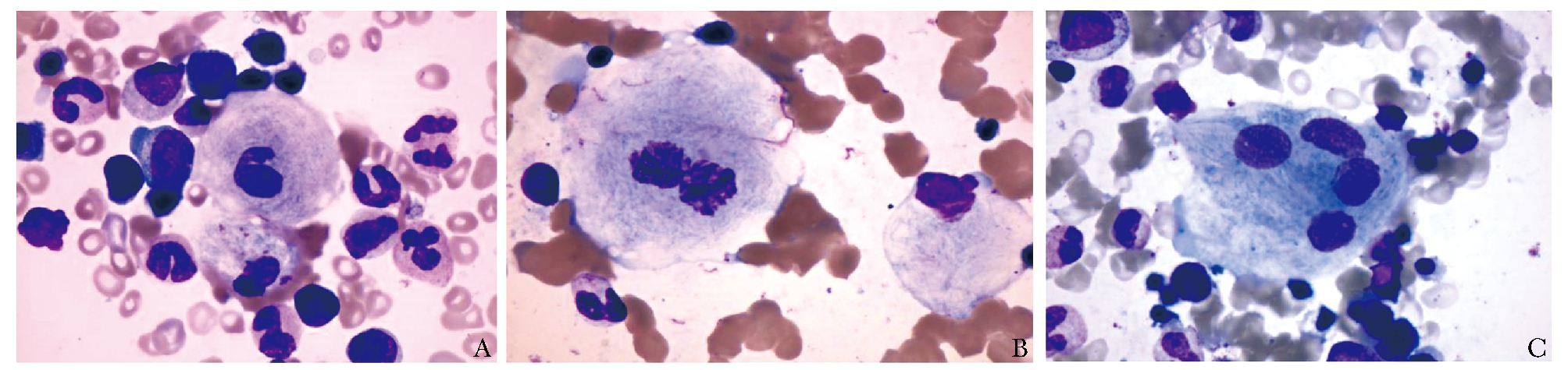 A.巨大细胞伴核畸形;B.双核戈谢细胞;C.多核戈谢细胞